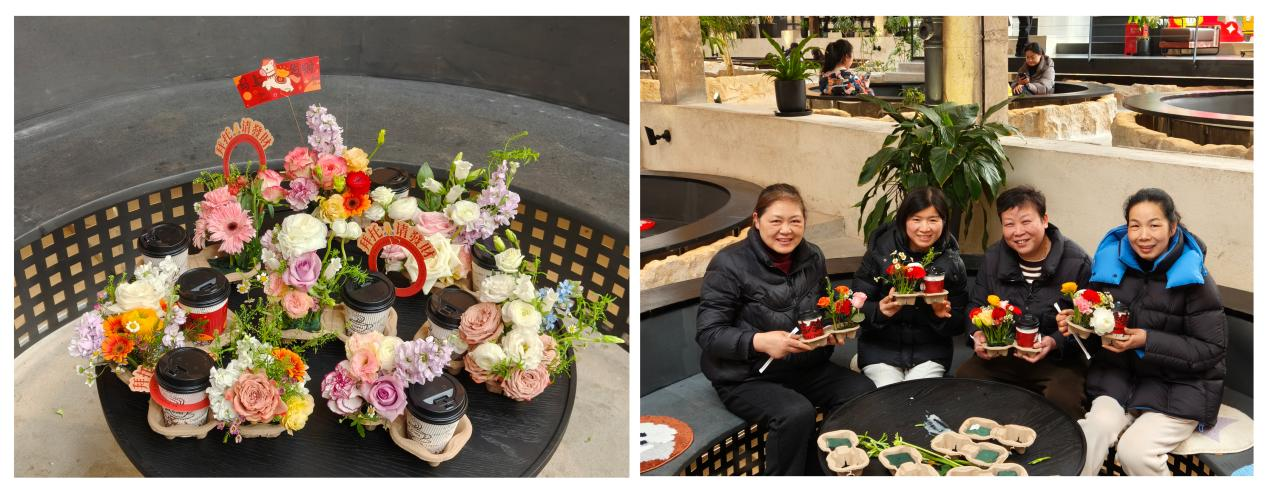 活动现场设置了趣味插花手工环节,大家在轻柔的音乐与淡淡花香中,沉浸式体验花艺创作的乐趣。剪枝、搭配、造型,一朵朵鲜花在指尖绽放成美好作品,欢声笑语不断,在轻松互动中增进了彼此情谊。